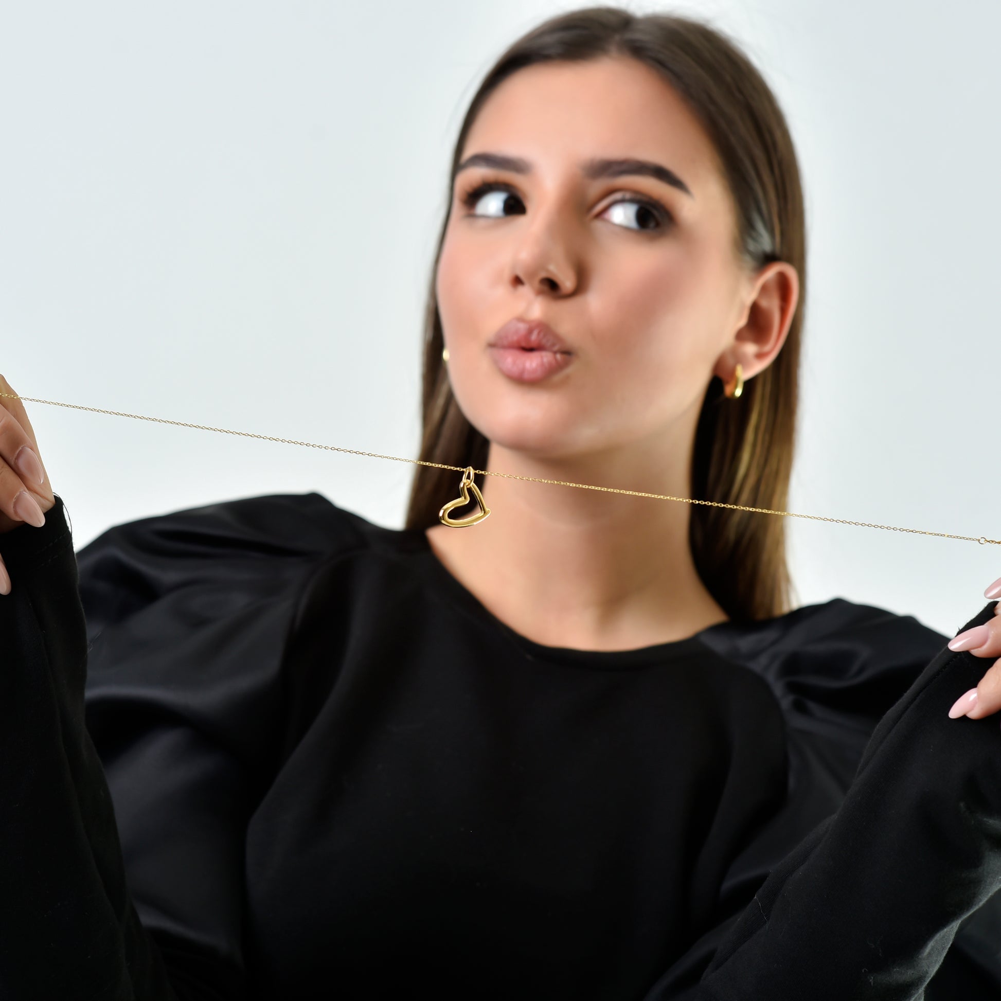 Crafted from high-quality gold-plated stainless steel, this necklace balances architectural form with effortless wearability. The hollow heart silhouette creates dimension without weight, moving with you through every moment — from morning coffee to midnight conversations.